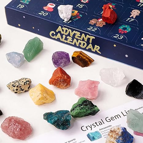 The 2024 Natural Crystal Christmas Countdown Gift Box is the present for crystal enthusiasts, loved ones, or even as a treat for yourself. It brings the enchantment of the holiday season and the beauty of natural crystals together in a delightful package. Embrace the anticipation and excitement as you countdown to Christmas, uncovering the treasures hidden within each day.