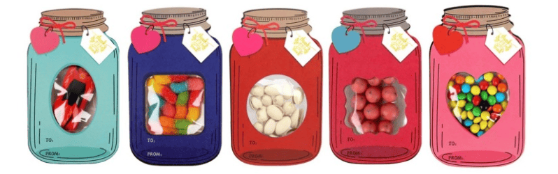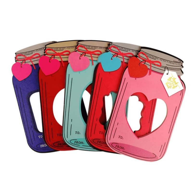 The valentines gift exchange DIY crafts pack includes 5 styles of die-cut mason jar shaped cards with space to write To and From on the front to send valentines sweet greetings or wishes.