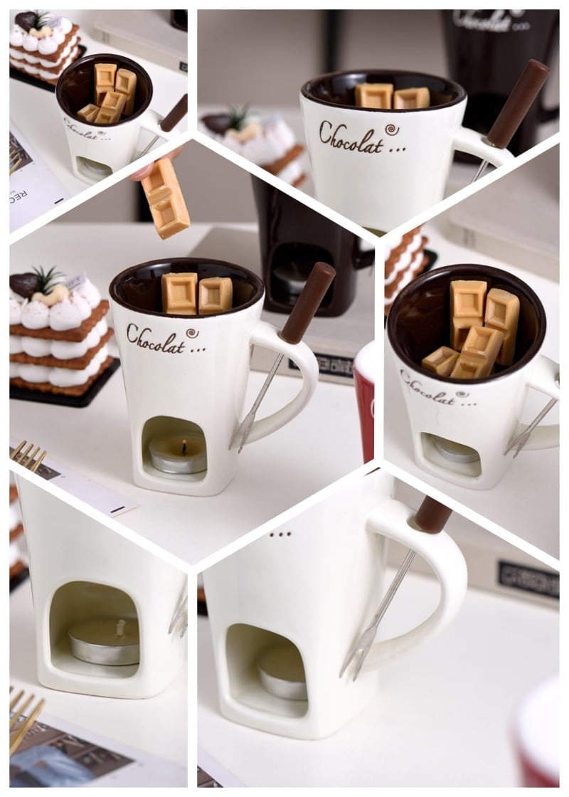 Unlike traditional fondue setups, this mug uses a simple tealight candle for heating, allowing you to create your own candles and add a personal touch to the experience.