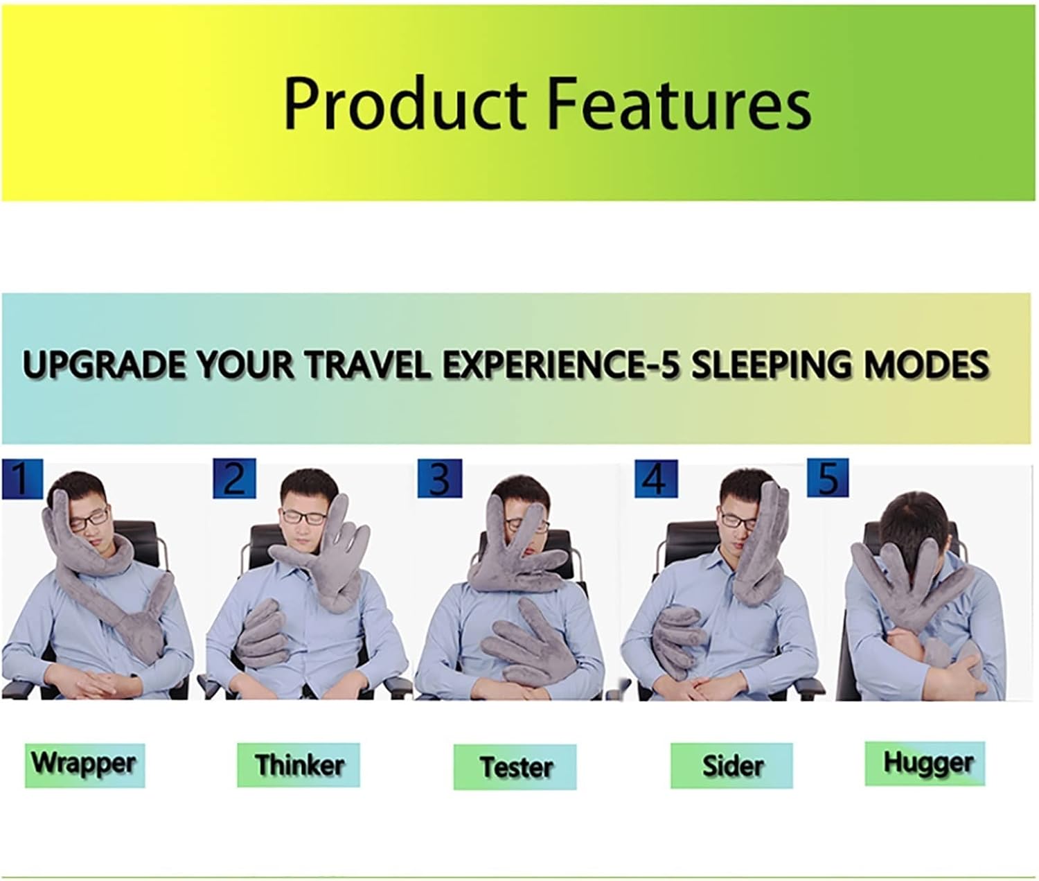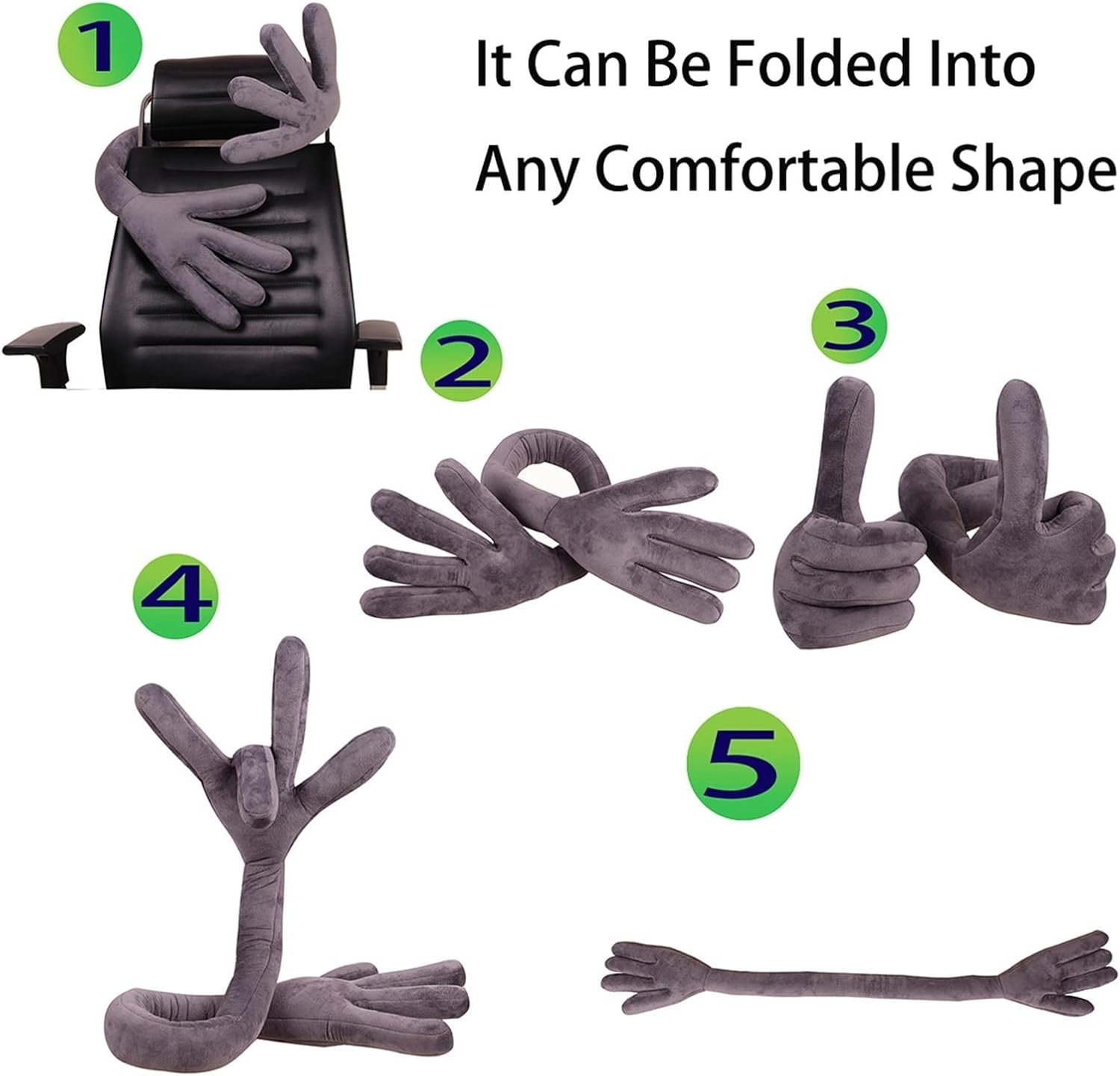 [SOFT MATERIAL]: Made of Super soft plush,Easy to clean, easy to carry out.The latest design, curved palm pillow?Support your head in any position,The hands can keep your head secure while you sleep.