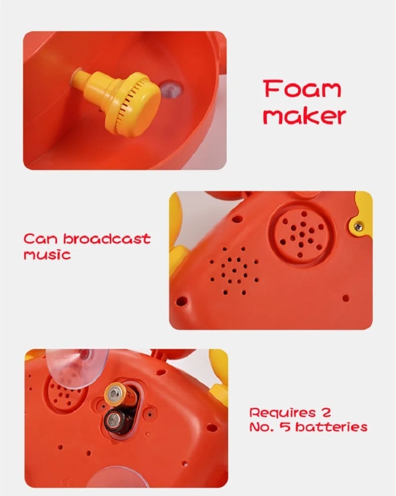 This Crab is not only a BUBBLE MAKER, but also a funny baby BATH TOYS as well as a MUSIC PLAYER. With this cute frog bubble machine, your baby will love having a bath and enjoy a wonderful happy bath time.