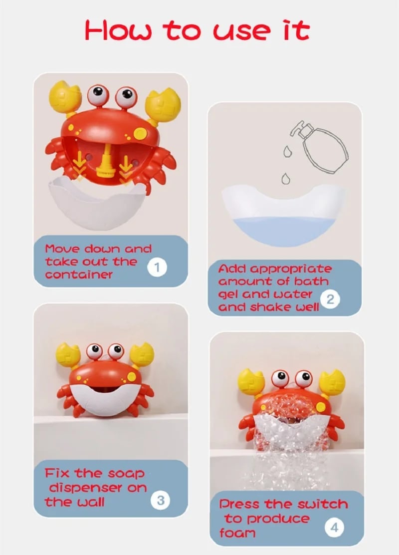 Baby Bath Automatic Soap Dispenser Bath Toys for Kids Fidget Bubble Toys pomperos Bath Foam Maker Crab Child Music Shower Soap Dispenser Baths Toys.