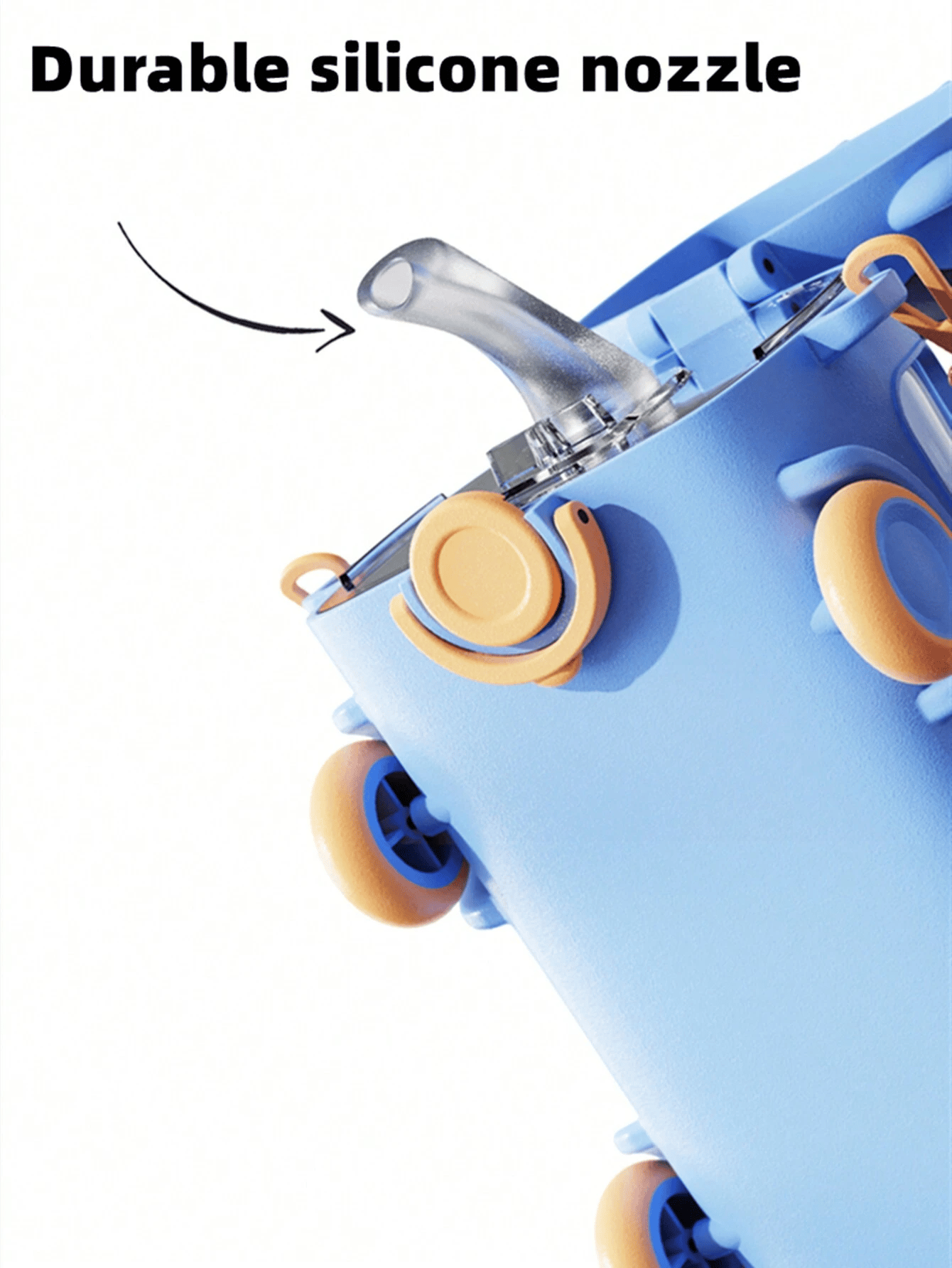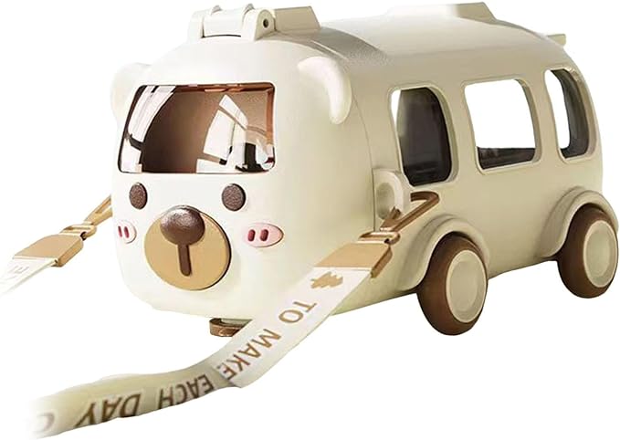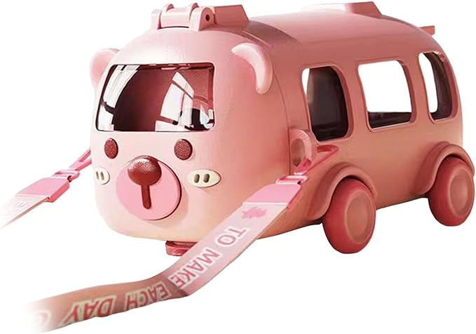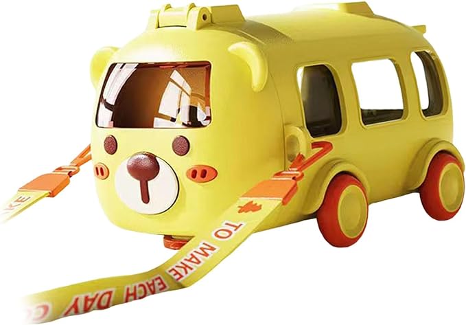 - 🚌【Cute Cartoon Bus Design】Kids waterbottle adopts a kawaii cartoon bus shape with movable wheels at the bottom. Made of eco-friendly food grade material, 100% BPA free. Holds 16 oz.