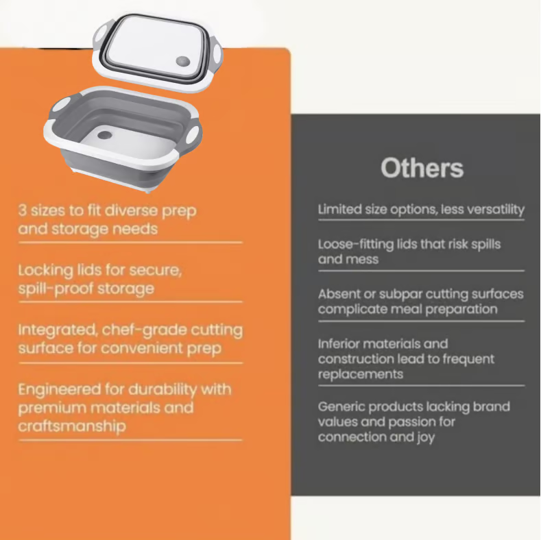 🔪 Smart 2-in-1 Lid – The lid doubles as a cutting board to save space and reduce mess.