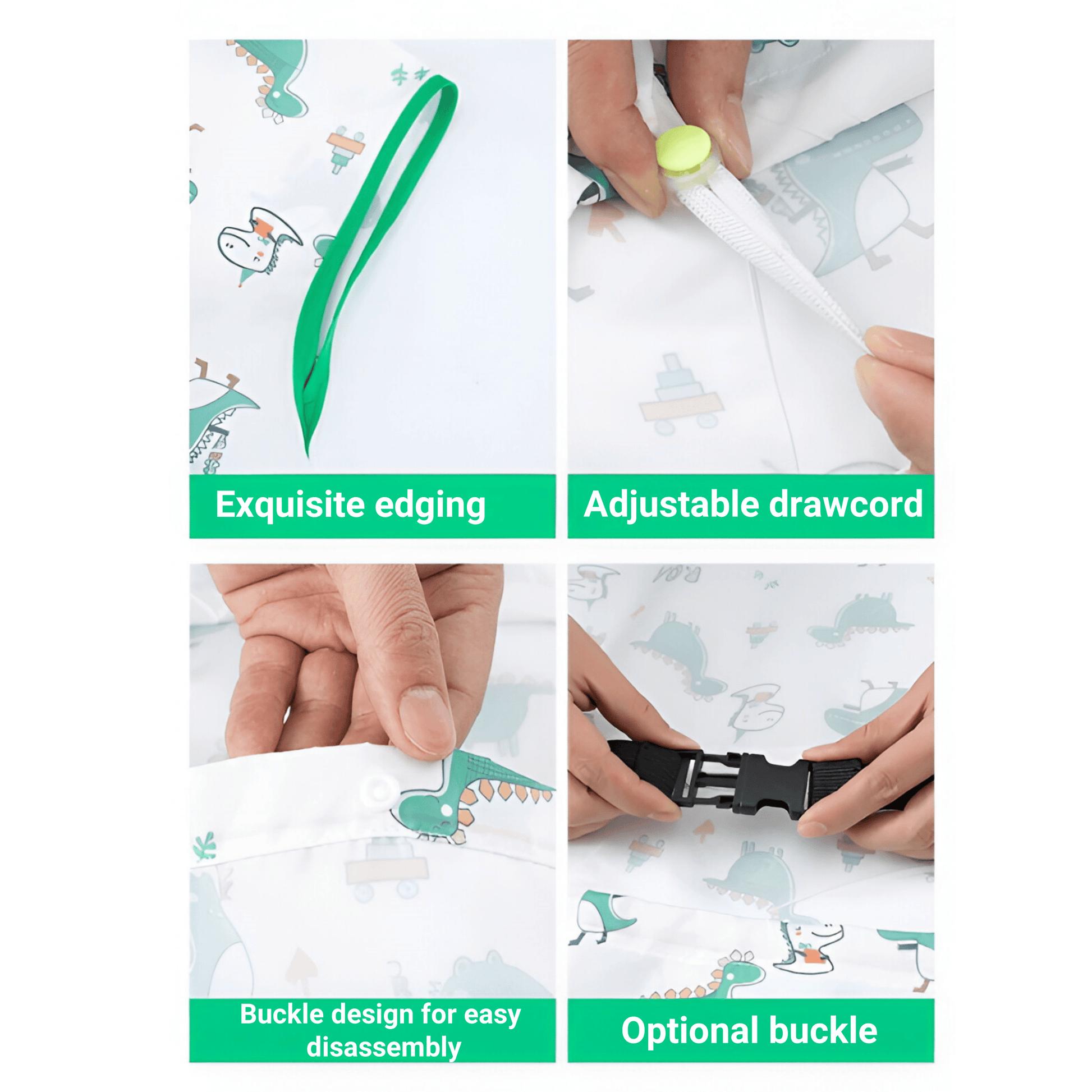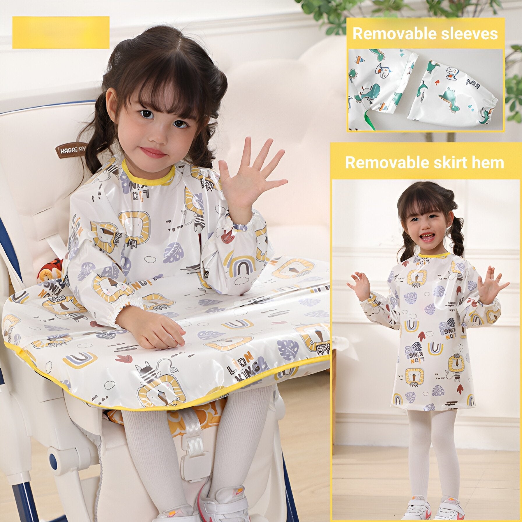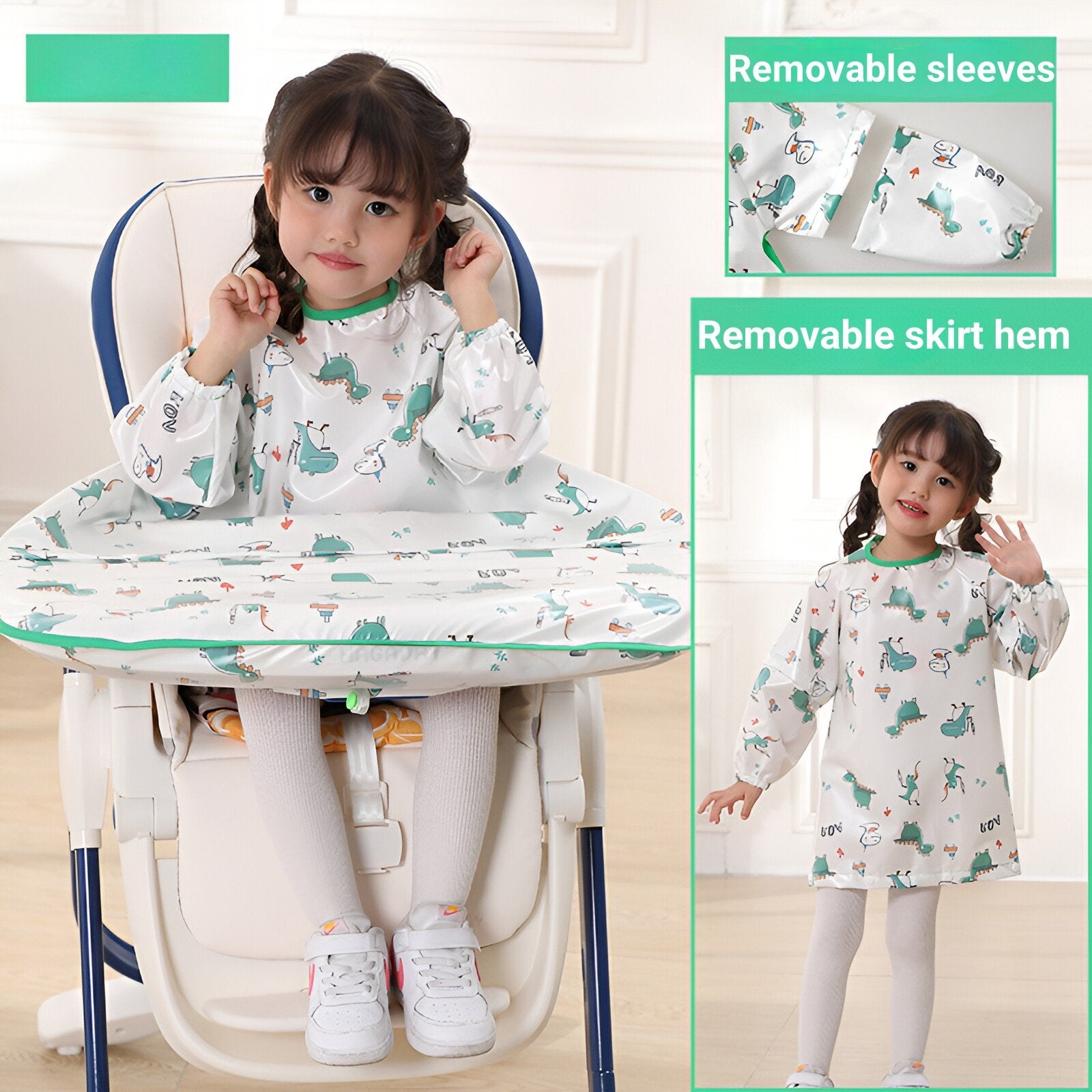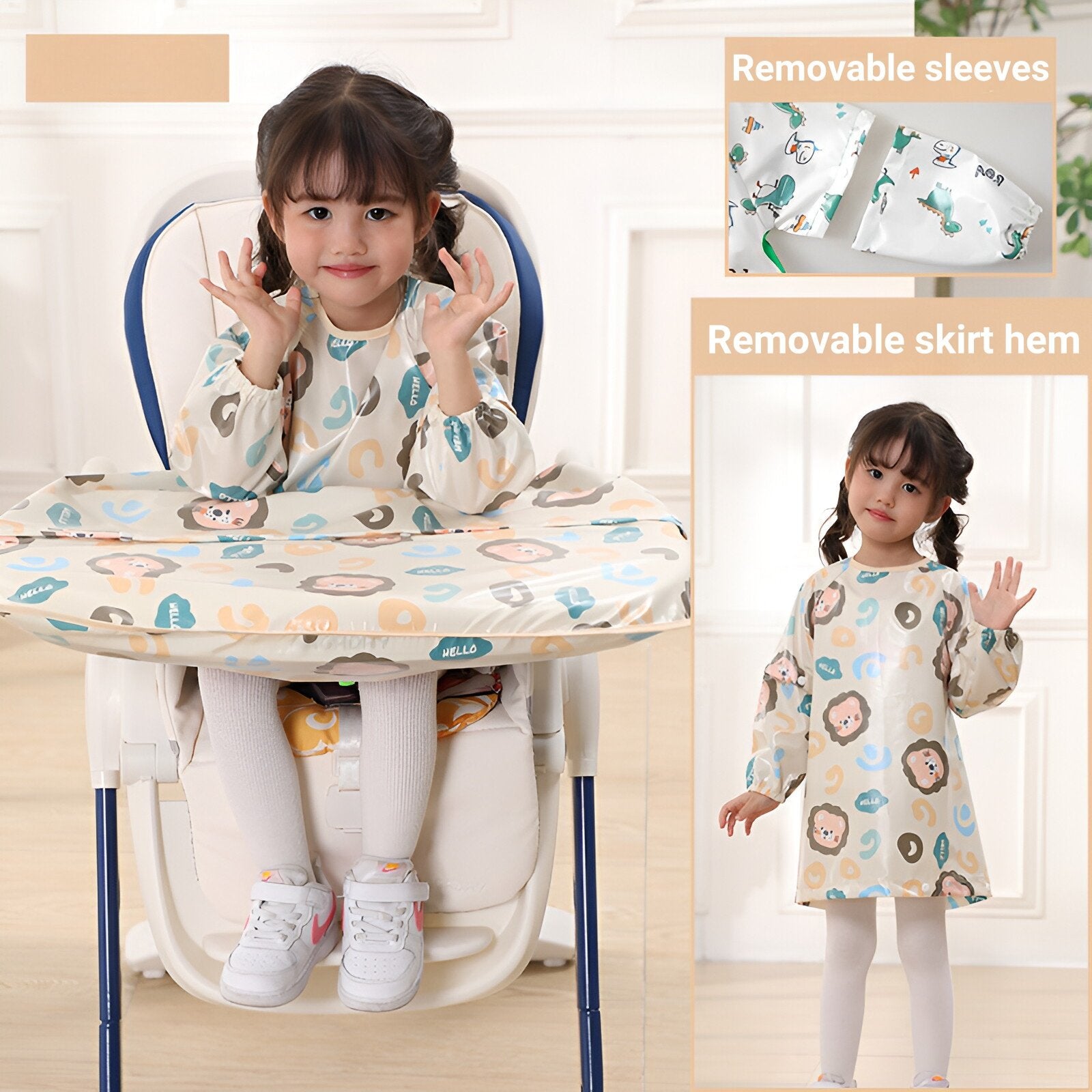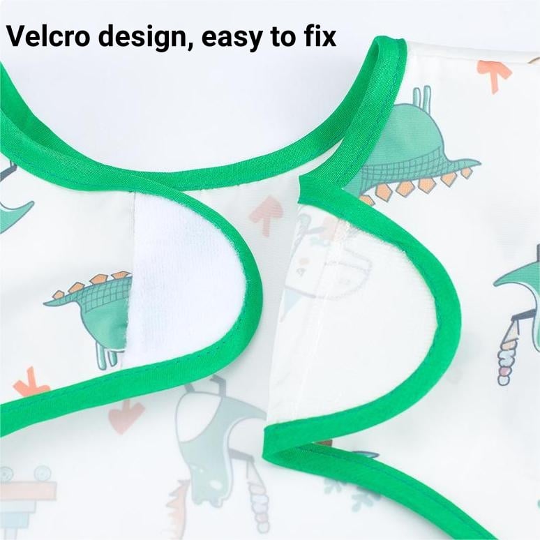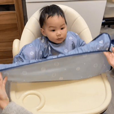 【Full Coverage Baby Bib】Covering the entire front and sides, with long sleeves, Velcro, and ropes, secure your bib to the stroller and table, keeping your child neat, clean, and dry while eating.