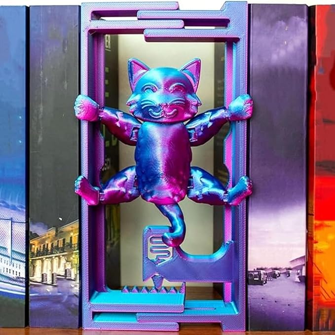 😺Fun Muscle Cat Adjustable Book Corner Sculpture:Let the kitty organize your books! This is the Hanging Cat - an adjustable book nook that extends in width to ensure a perfect fit on any bookshelf.