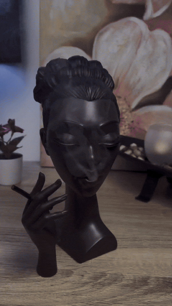 This elegant piece stands out with its detailed design. The incense burner measures9.05" from neck to head, while the hand and incense box add a delicate touch. ldeasize to fit beautifully into any space.