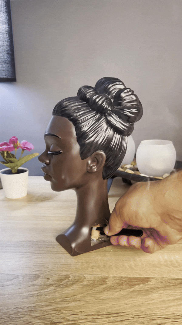 Using this incense holder is simple. Just light the incense cone, place it in the openingat the back of the neck, and relax as the aromatic smoke gently flows from themouth.A simple ritual to fill your home with calm.