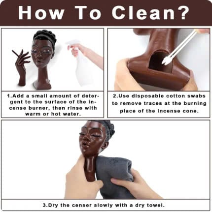 Add a small amount of detergent and rinse with warm water. Use a cotton swab toclean any residue from the cone, and gently dry with a towel. Keep your incenseholder spotless to enjoy its bequty and aroma.