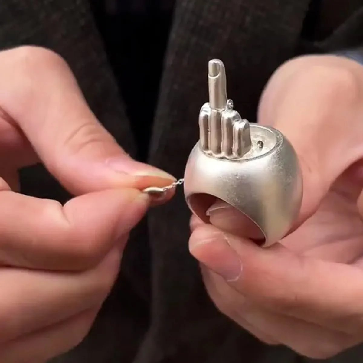 Premium Material: Crafted from premium stainless steel, this funny rotating pop up middle finger ring ensures a comfortable fit that won't irritate your skin. The intricate design and attention to detail make it a standout accessory