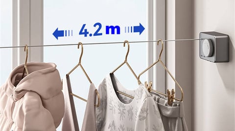 Laundry clothes line drying line can freely retractable so that you can use it when hanging to dry and stows neatly away when you don't need it. Totally save your space in the home! The line is slowly as walking speed when retractable to keep using people's safety.