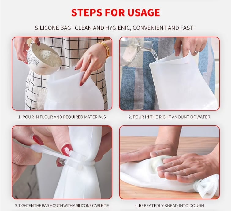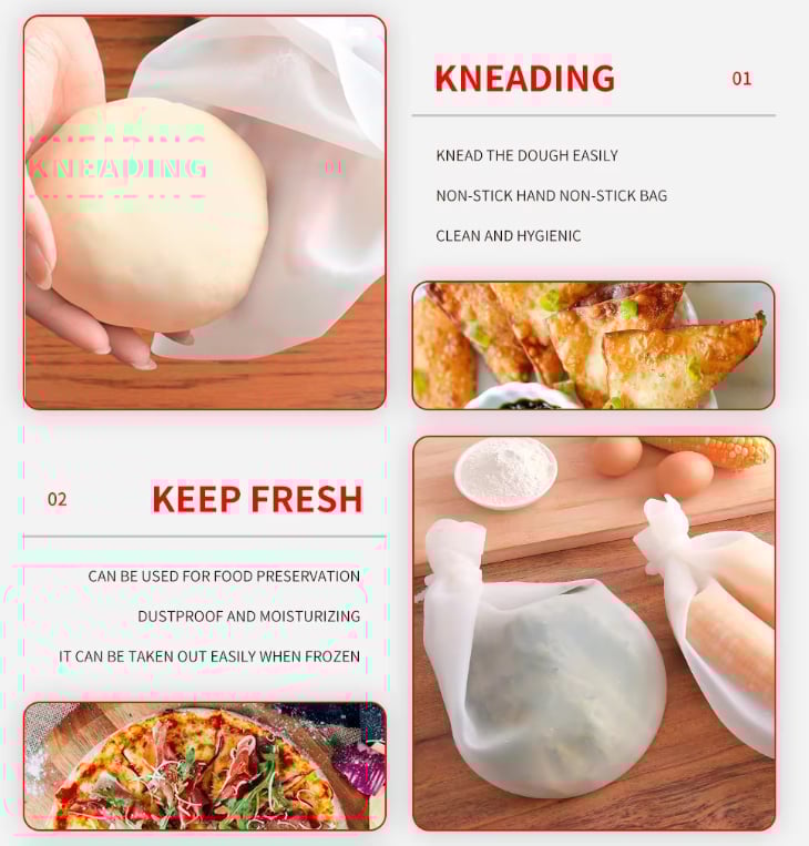 Silicone kneading bag is a popular product for cooking enthusiasts, it can complete all the process from flour to dough molding, reduce the workload, allow you to make the best food in the shortest possible time, improve the efficiency of bread making and produce delicious baked goods.
