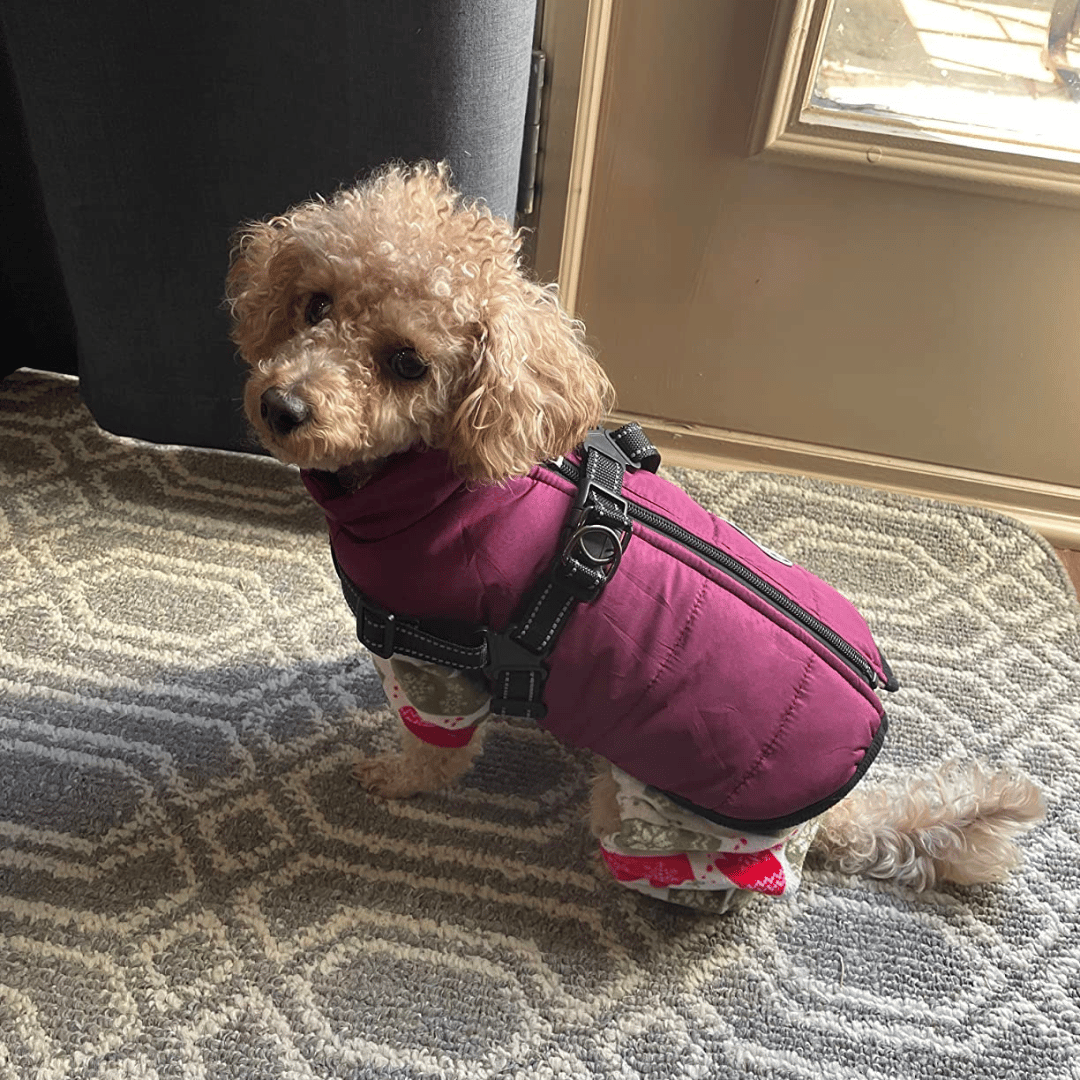 The Winter Dog Jacket ensures your dog stays cozy and dry during every outdoor adventure, no matter how cold or wet it gets.