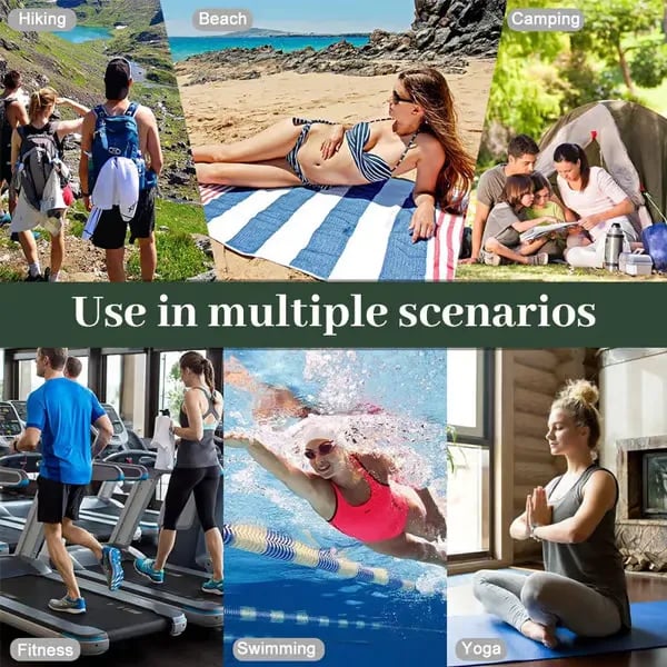 🚿 Outdoor bathing: convenient for drying the body after camping, swimming pool, and surfing.