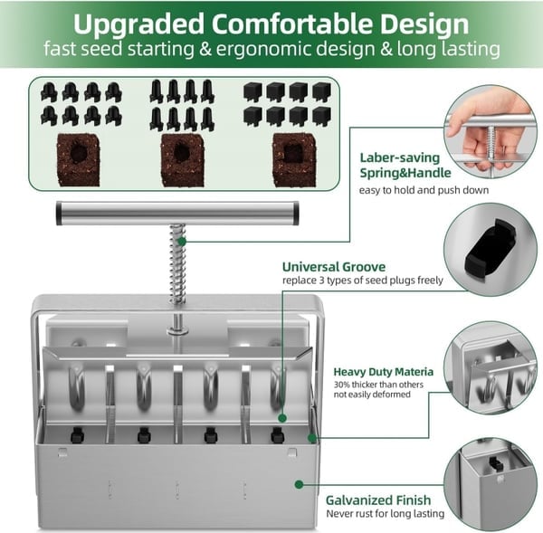 🌱Sturdy, Labor-saving Soil Blocker & 3 Sizes Seed Pins
