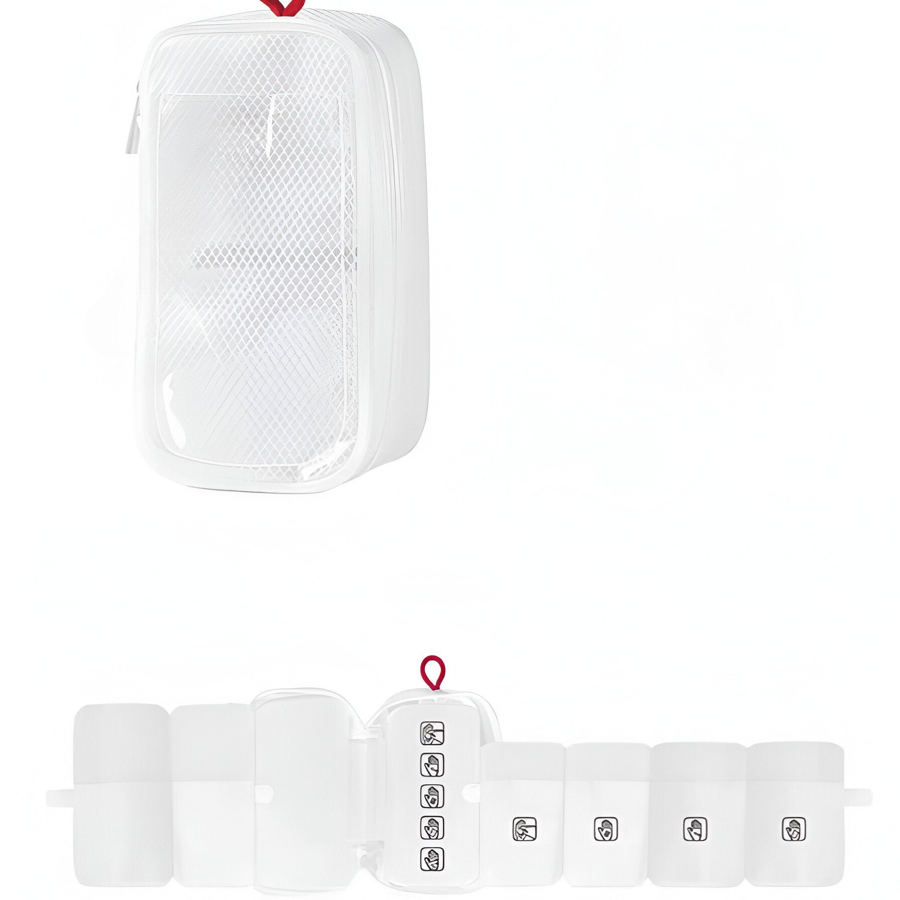 Grab the small drawstring and pull it gently, and the originally compact storage bag will instantly bloom. Different items can be put into these small bags in different categories, and they can be seen at a glance.