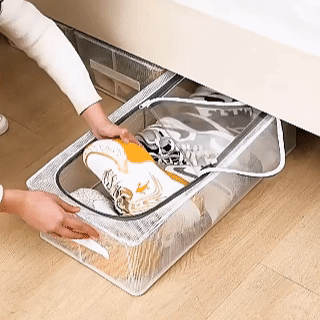 【PVC Foldable Shoe Storage Box 】When not in use, they can be folded and placed in narrow gaps without taking up space. And the stitched handle design makes pulling and pushing more convenient.
