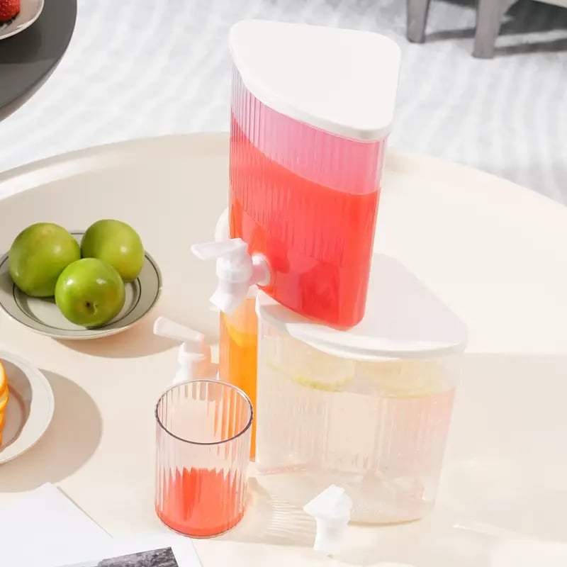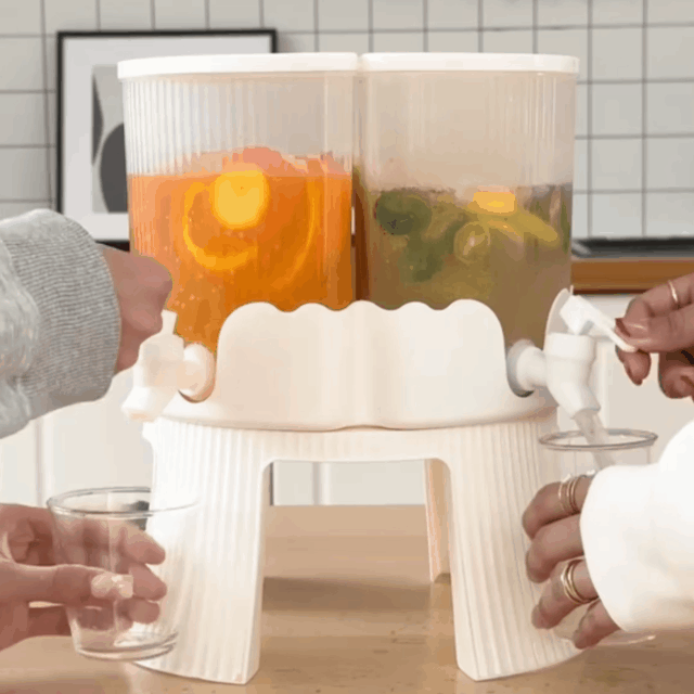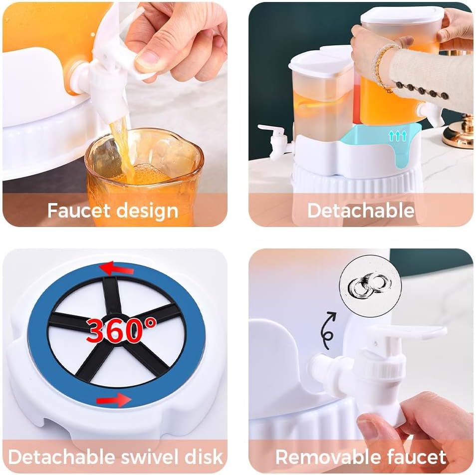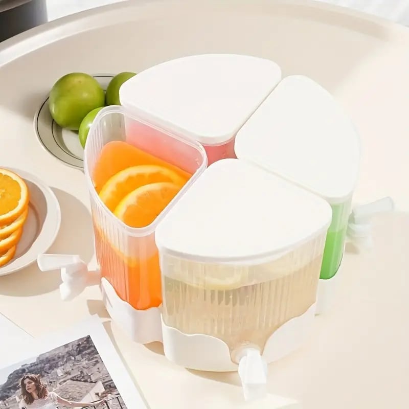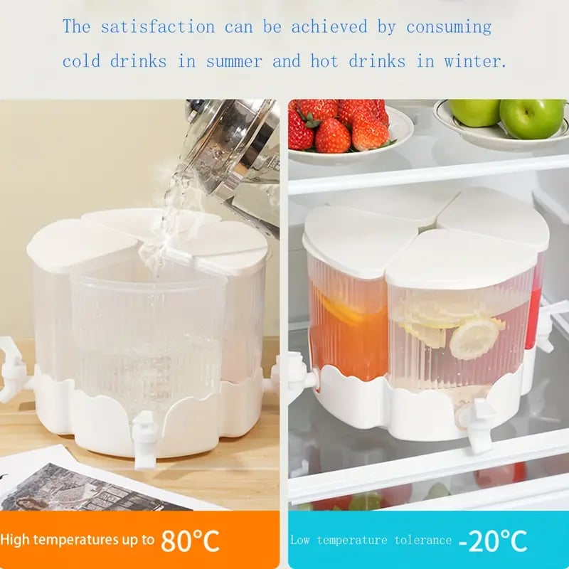 ★[4 Individual Triangle Dispensers]New and improved cold water dispenser design, the large dispenser can accommodate 4 individual triangle dispensers, each compartment can prepare a variety of flavours of juices or beverages, with a user-friendly tap for smooth and mess-free pouring.