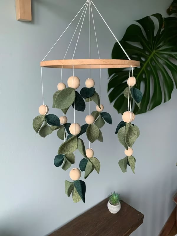 Forest baby mobile with leaves green for your baby! It is will decorate the nursery . The mobile is an ideal gift for baby shower.
