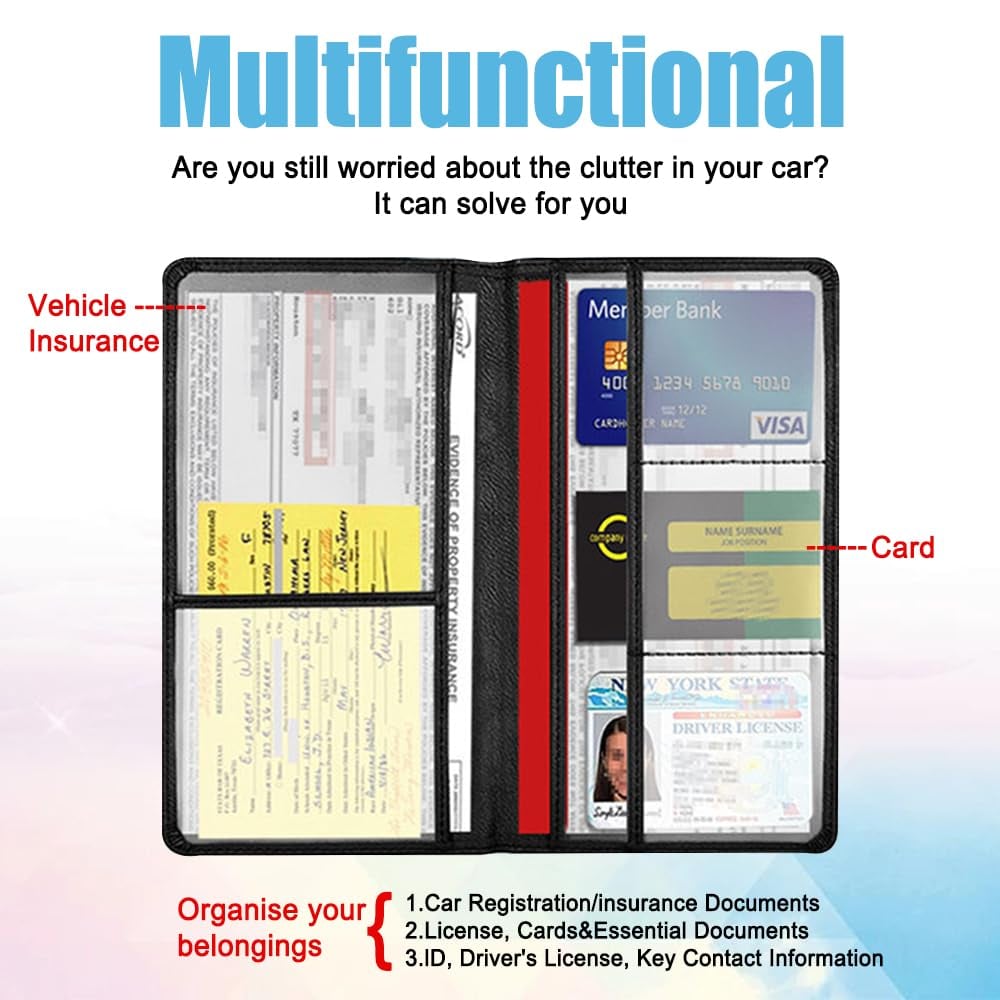Practical Design: The inside of the car registration holder are transparent layers, good stability, storage cards/documents will not easily fall out. A transparent compartment is designed to allow you to show your internal documents in an emergency. When opened, you and others can easily see the necessities without having to remove them again. This conveniently designed car necessities is ideal for storing your important documents for added safety.