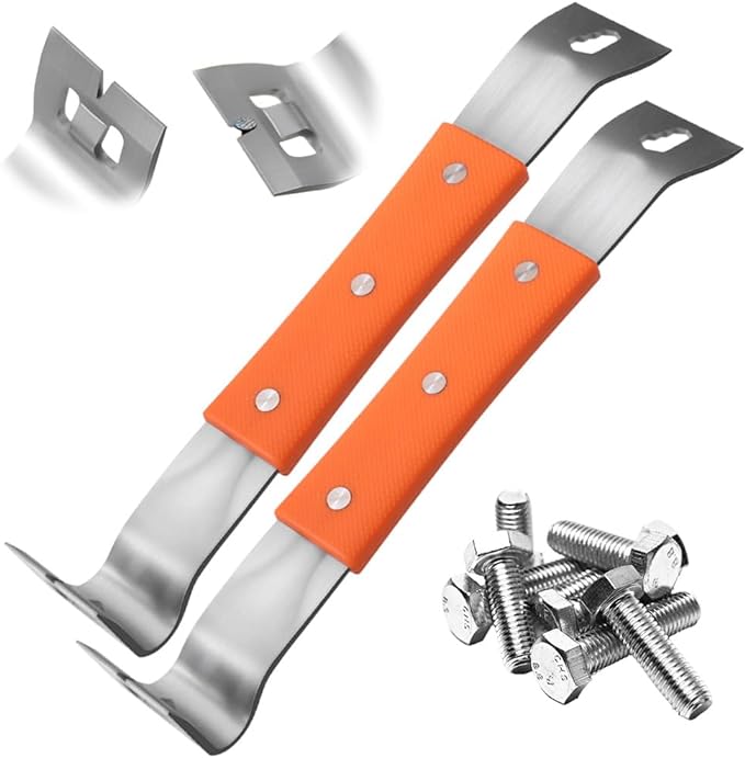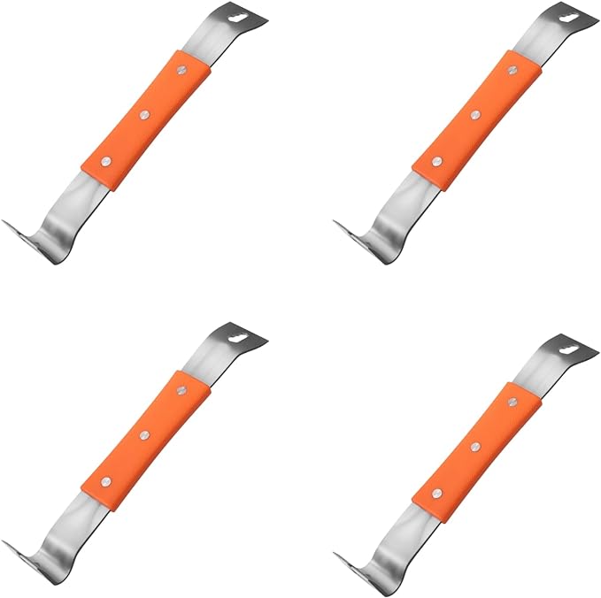 - 🛠️【Multifunctional crowbar】Our flat bar tool excels in a wide range of applications. From pulling apart walls and prying off moldings to removing baseboards and trims, it tackles various woodworking tasks effortlessly. It can also serve as a nail puller, hive tool, hex socket, bottle opener, or even a handy beekeeping scraper.