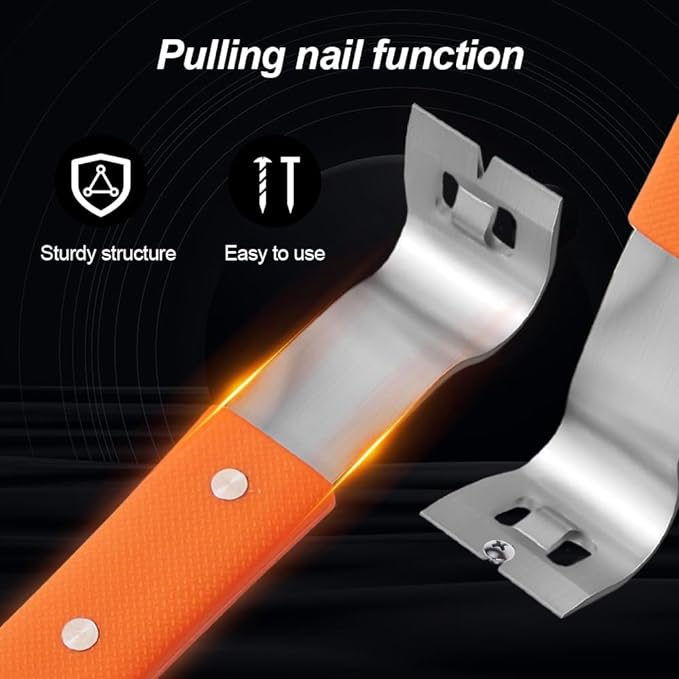 - 🛠️【Nail Puller and Angled Pry Bar】Crafted from thickened stainless steel, our flat bar tool is built to last. Its high hardness ensures strength and durability, preventing bending or cracking even during heavy use.